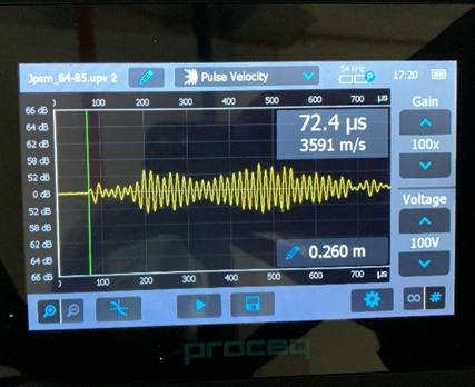 Civiltec Testing Services can carry out concrete quality test on concrete structures. Concrete quality can be assessed on site and measured from the correlation of pulse velocity and strength of the structural concrete elements. In addition to being able to determine the uniformity of concrete in and between structural members, the measurement of the velocity of ultrasonic pulses of longitudinal vibrations through concrete can also determine the modulus of elasticity and dynamic Poisson’s ratio of the concrete.